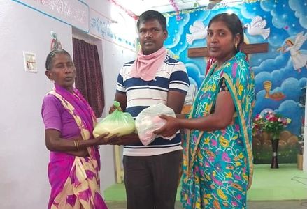 Our district pastor Dayakar distributing Grocery bags to the needy at Geetavaregudem